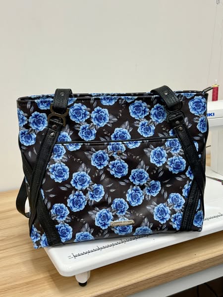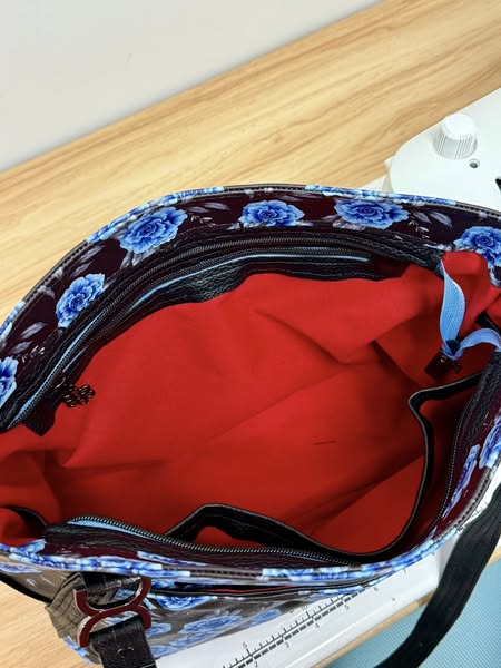 We arrived fully prepared — all of our vinyl and lining fabrics already cut out — ready to dive into a full day of sewing magic. The class started with learning a new technique for making handles, which was a great way to ease into the project and pick up fresh skills. From there, we moved on to constructing the interior pockets, getting excited as our totes began to take shape.
