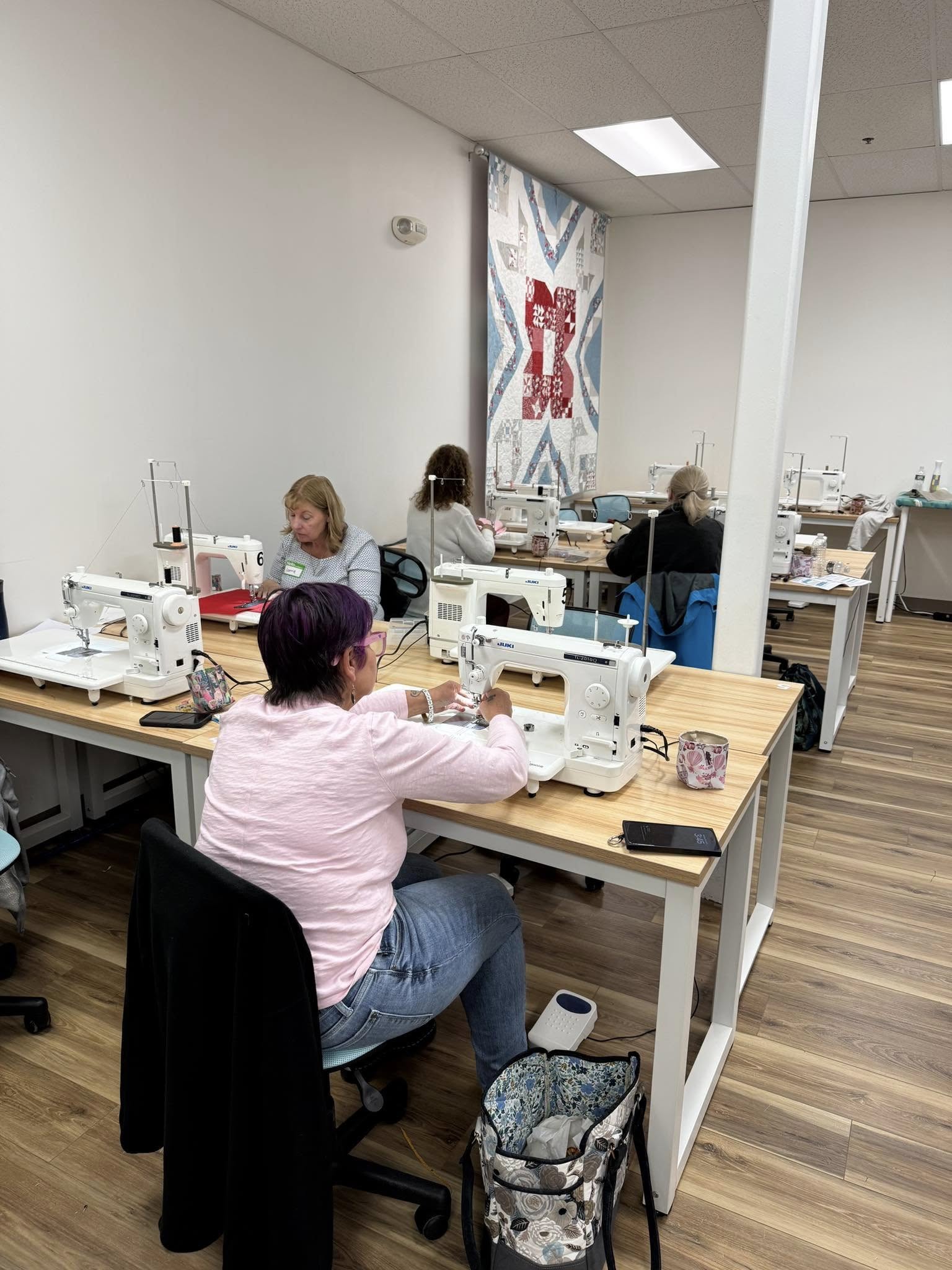 One of the highlights of the day was seeing how every tote looked completely different — thanks to the variety of vinyls, linings, and hardware selections. It was inspiring to see sewists of all skill levels working side by side, each adding their unique style to their projects.